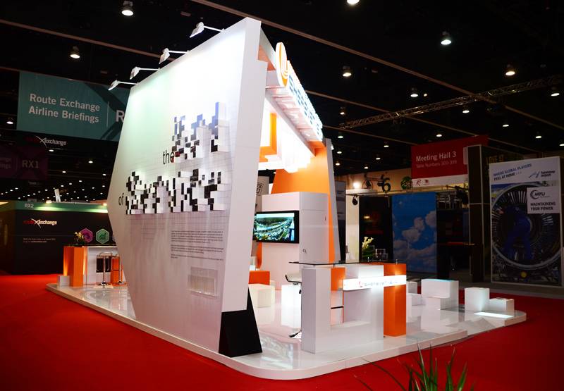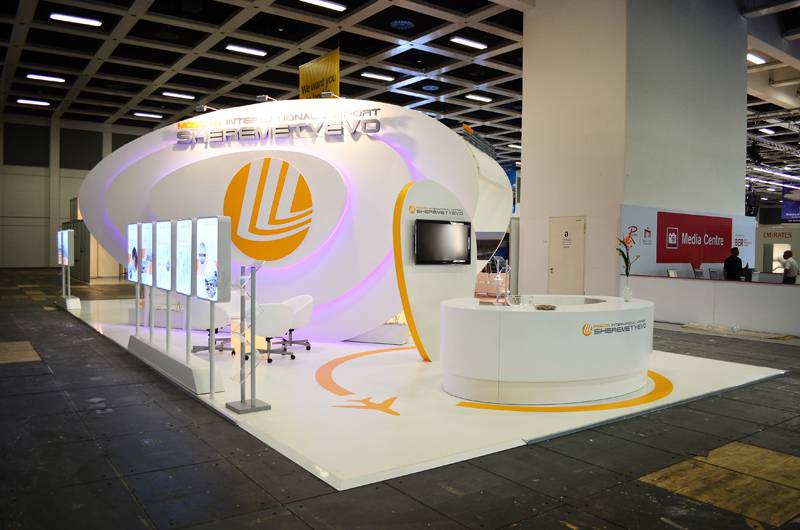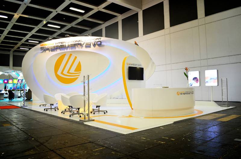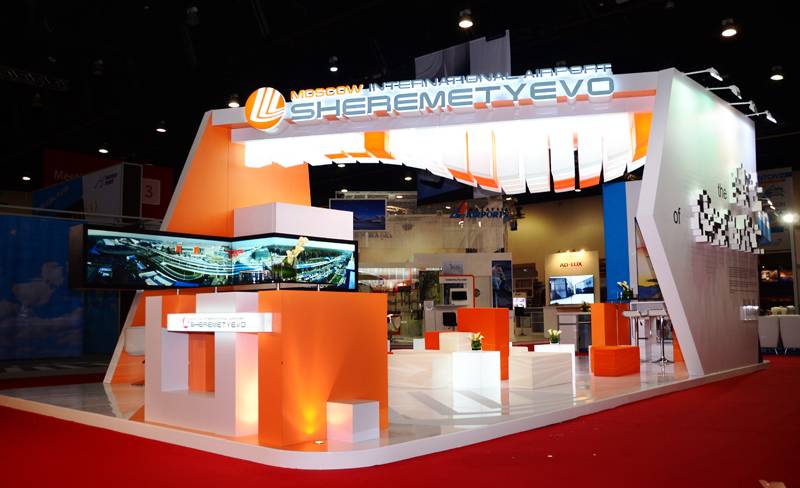 BUILDING ON THE MOMENTUM OF OUR BERLIN CONCEPT THE YEAR BEFORE, WE TOOK SHEREMETYEVO’S SHOWCASE IN ABU DHABI TO THE NEXT LEVEL. THE DESIGN TAPPED INTO RUSSIAN POPULAR CULTURE WITH A BOLD, TETRIS-INSPIRED BOOTH THAT WAS INSTANTLY ICONIC