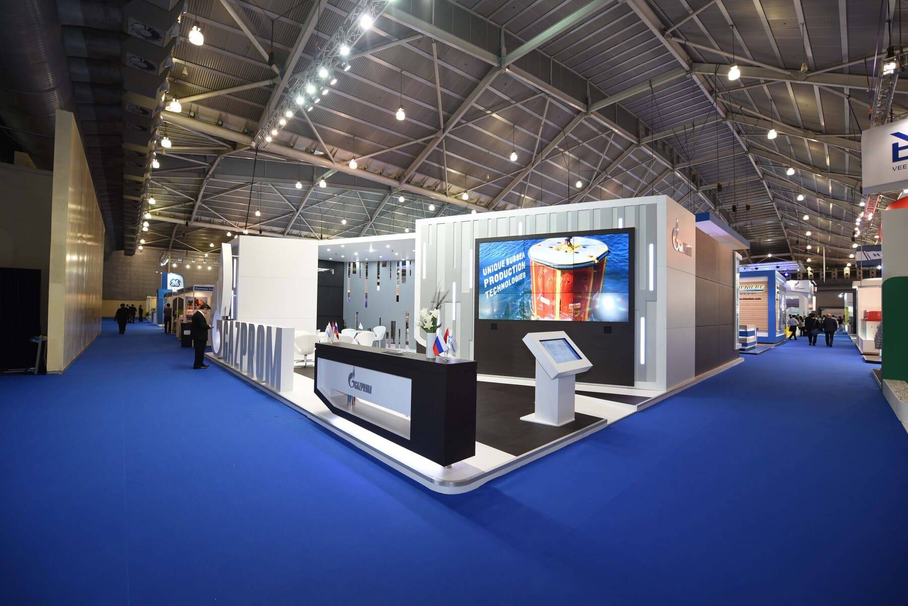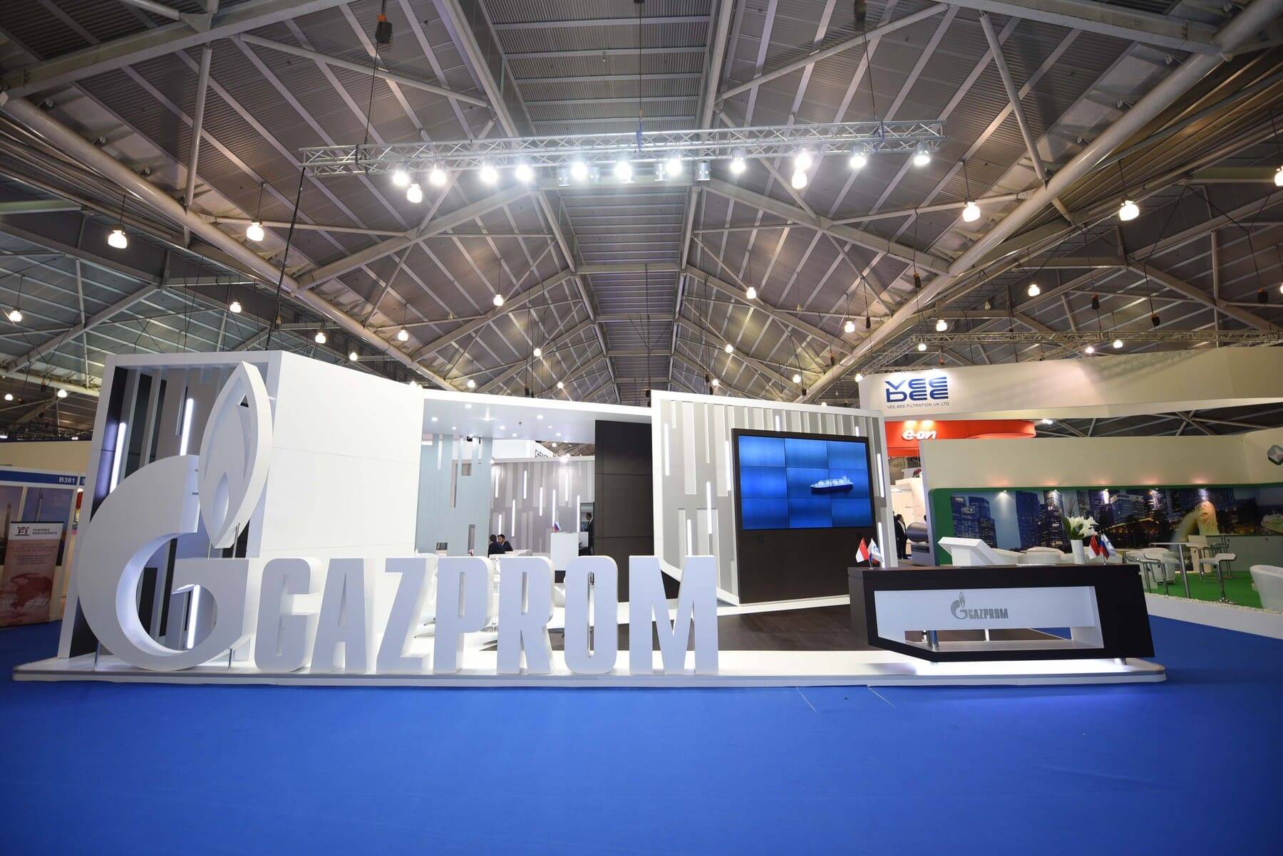 AS PART OF OUR CONTINUED COLLABORATION WITH A LEADING RUSSIAN DESIGN AGENCY, WE WERE ENTRUSTED TO DELIVER A DISTINCTIVE BOOTH FOR GAZPROM, ONE OF THE WORLD’S FOREMOST ENERGY COMPANIES. WITH PRECISION, AGILITY, AND UNCOMPROMISING ATTENTION TO DETAIL, WE TRANSFORMED REQUIREMENTS INTO REALITY IN JUST TWO AND A HALF WEEKS EXECUTING A BUILD THAT NOT ONLY MET GLOBAL STANDARDS BUT ALSO REINFORCED GAZPROM’S COMMANDING PRESENCE AT THE EXHIBITION
